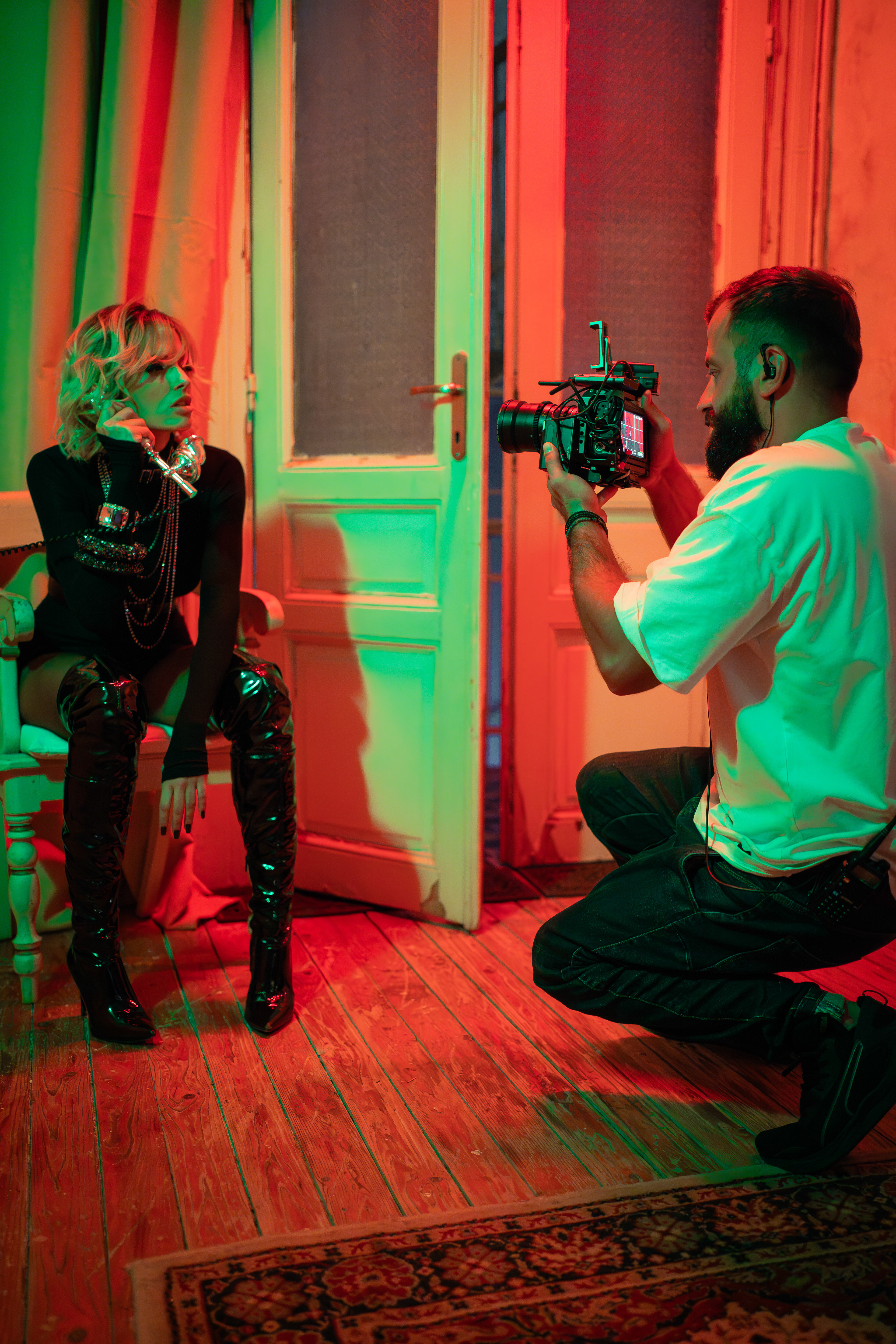 Behind the scenes from the music video shoot for "Telika Sou Esteila" by Katerina Lioliou. A sensual and visually striking production, featuring expressive performance by the artist and beautifully crafted lighting. My focus was to capture the atmosphere on set, the cinematic mood, and the subtle moments that bring the story to life behind the camera.||Directed by Alex Konstantinidis||Asst. Director: Anastasia Panopoulou||Camera Operator: Triantafyllos Aslanidis ||Focus Puller : Dimitris Kopalidis ||Production Manager: Alexandra Theofili ||Production Assist.: Theofillos Fourountzidis||Editing & Coloring by Alex Konstantinidis||Backstage photographer: Grigoris Vasileiadis